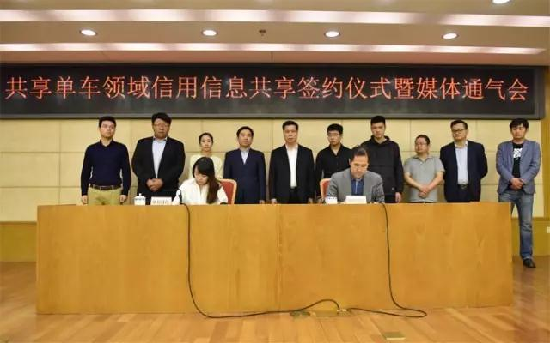 共享单车领域信用信息共享签约仪式暨媒体通气会在京举行。