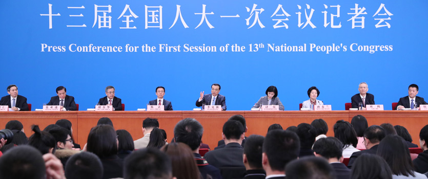 3月20日上午,十三届全国人大一次会议闭幕后,国务院总理李克强在人民大会堂三楼金色大厅会见采访十三届全国人大一次会议的中外记者并回答记者提出的问题。