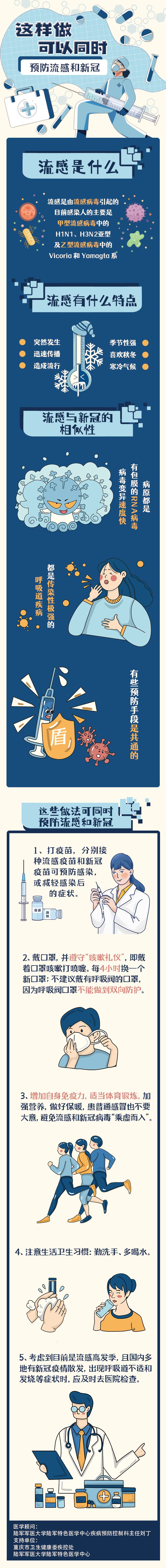 疾控专家表示,由于流感和新冠有一定相似性,一些做法可以同时预防这两种流行性疾病。如何做?一起来看看这张漫画。