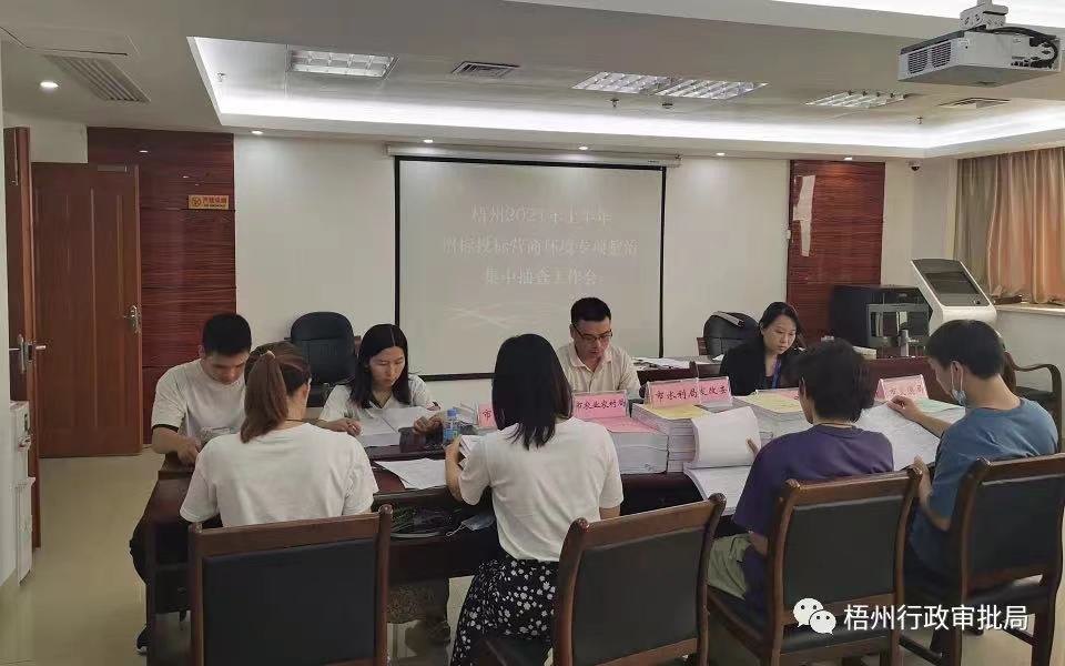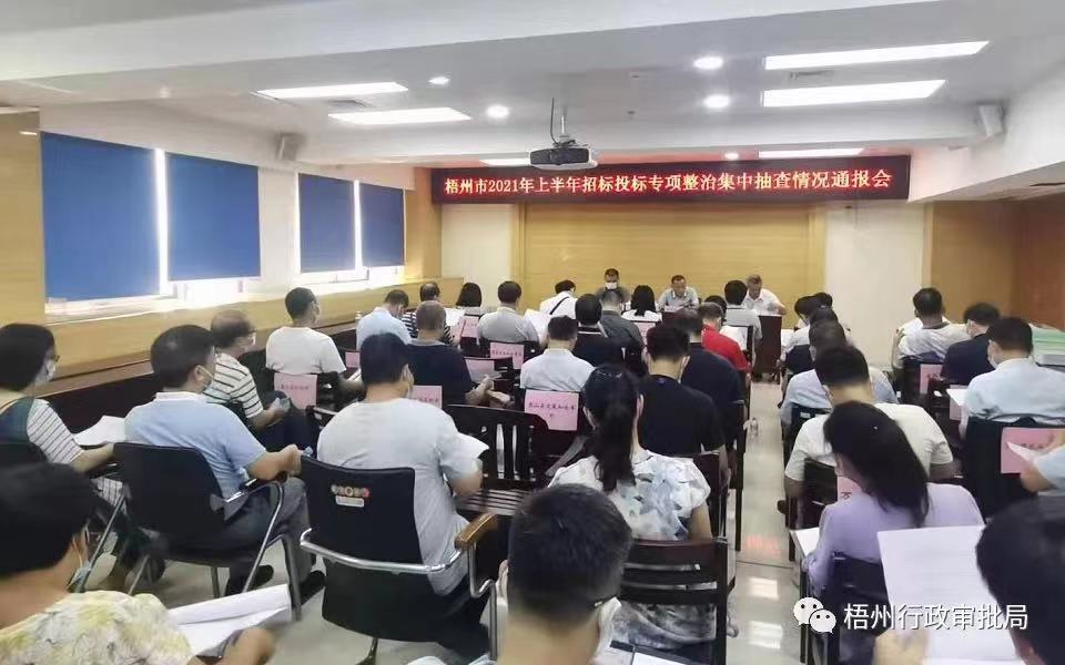 为加强对公共资源交易领域的监管,促进公共资源交易活动公平有序开展,梧州市行政审批局牵头,与市发展改革委、市住房城乡建设局、市交通运输局、市水利局、市农业农村局等行业主管部门组建联合抽查组,开展 2021 年上半年招标投标领域专项整治联合集中抽查活动,在全市依法进入市、县两级平台公开招标的 162 个工程项目中,随机抽选 33 个项目进行检查,抽查比例为 20.37%。