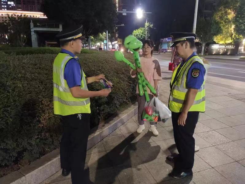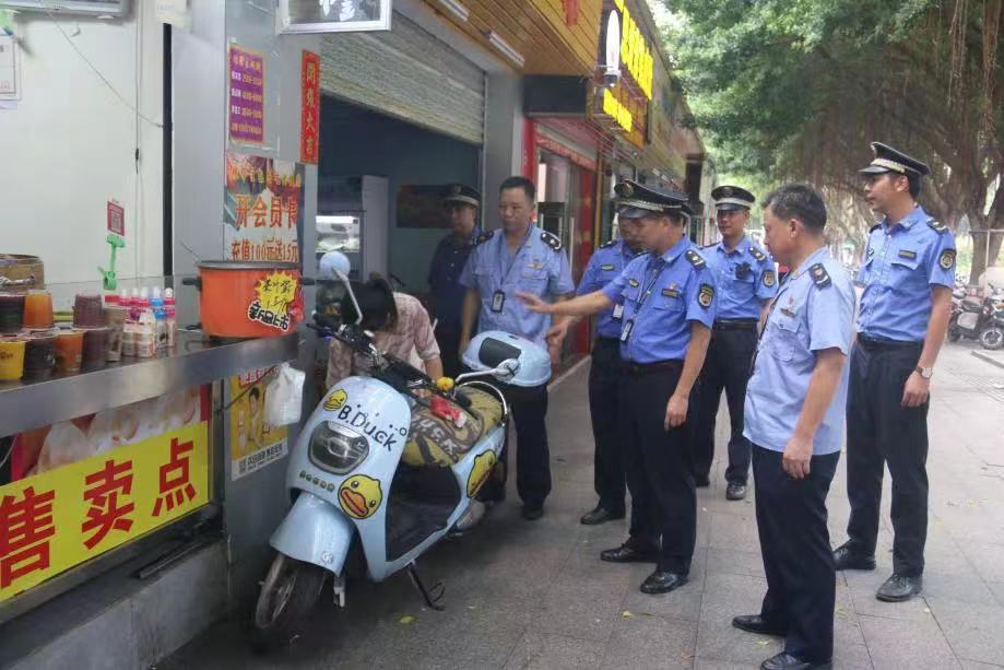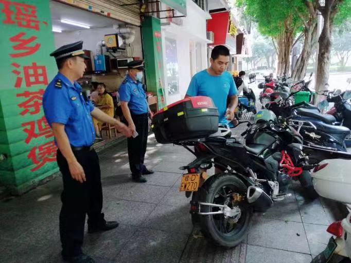 以创建全国文明城市为契机,对市政广场周边道路占店铺跨门槛经营、占道堆放、门前非机动车辆乱停放等问题进行纠治。对非机动车停车行为规范引导,劝导商家把停放在门口非机动车停入划定的停车位。强化市容管控,对店铺占道经营、流动摊档进行劝离取缔。对临街店铺店外电动车充电现象进行劝导,消除安全隐患。努力打造畅通、有序、整洁优美的市容环境,助力全国文明城市创建。