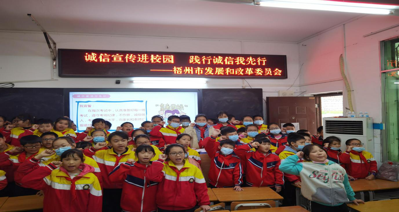 为引导培育青少年深入践行社会主义核心价值观,树立诚信理念,强化诚信意识,培养诚信品质,弥扬诚信文化,呼吁同学们在学习和生活中重诚信、守诚信、讲诚信,树立正确的世界观、人生观、价值观,倡导同学们坚持实事求是的诚实品质。2021年10月22日市发展改革委与梧州市民主路小学联合开展诚信文化进校园”宣传活动。