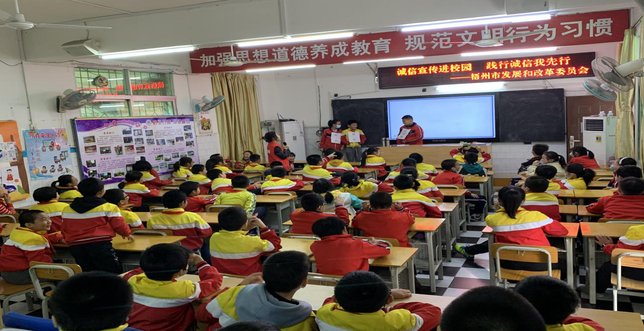 市发展改革委宣传员现场巧妙引用典故,向同学们讲解诚信的含义,从诚信视角在学生成长阶段的重要性来剖析分享案例。同学们则以生活中亲身经历的诚信“小故事”为例,共同分享讲诚信对自身的影响。最后,宣传员还带领全体同学进行“诚信”宣誓,争当成为新时代诚实守信的好少年。