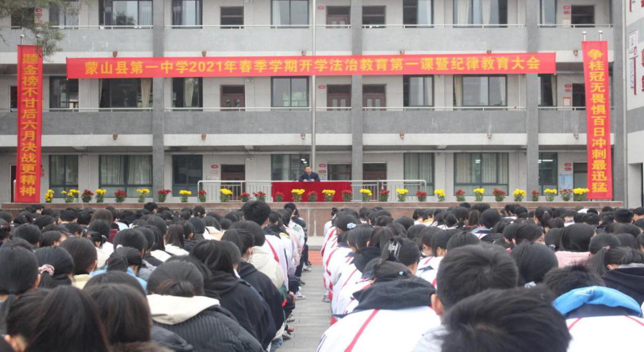 蒙山县第一中学通过开展法治诚信教育开学第一课,建立学生的诚信档案,记录学生个人的基本情况、 品行说明、学习成绩、信用记录以及奖惩状况等,强调学生要加强个人道德品德修养。从而引导学生树立诚信意识。同时通过国旗下讲话、校园广播宣传、守法诚信主题班会等宣传方式,让同学们知道依法治国的根本理念,明白作为社会的公民,诚实守信,遵纪守法是基本要素,为诚信校园文化环境的建设打好基调。
