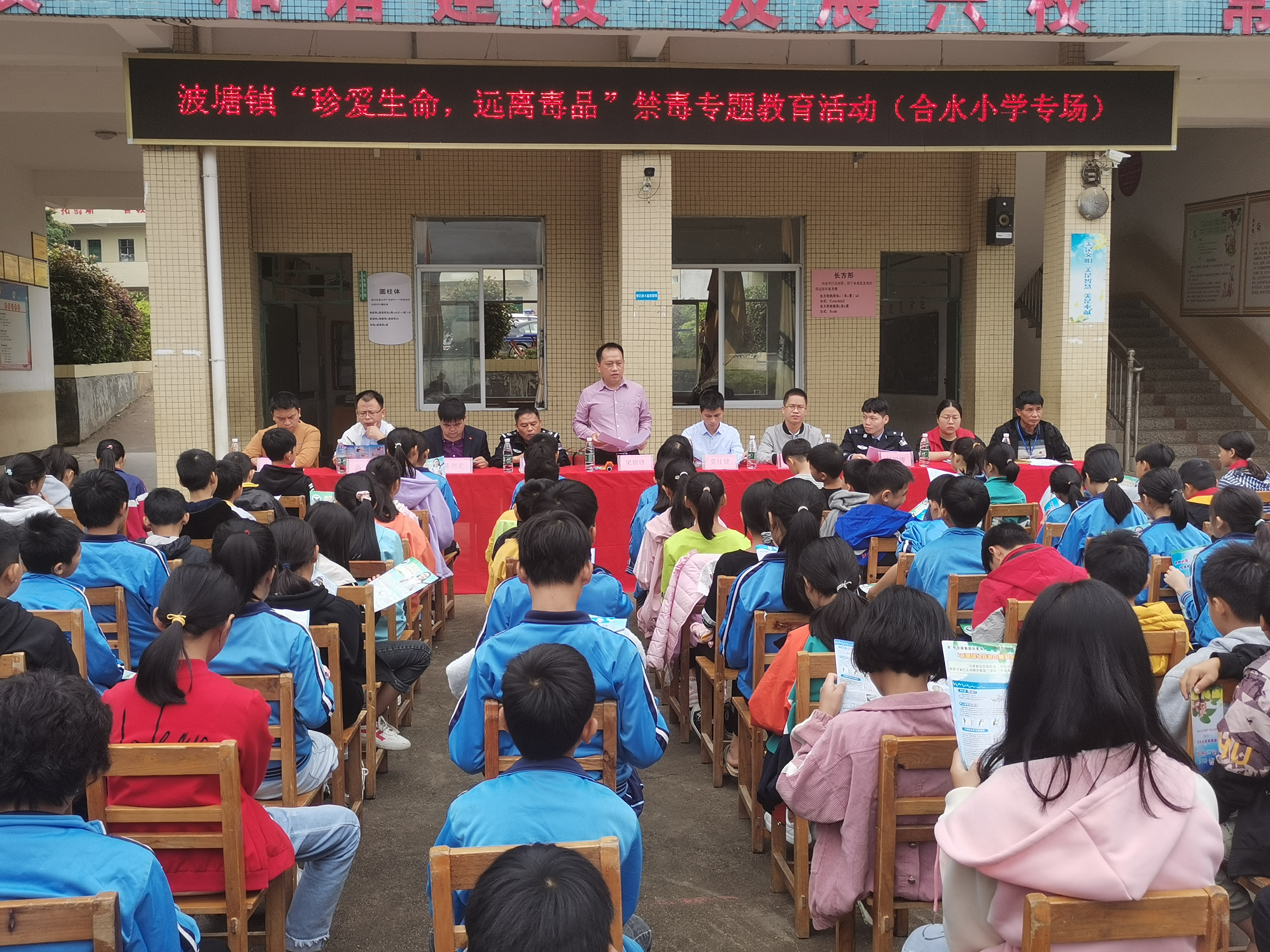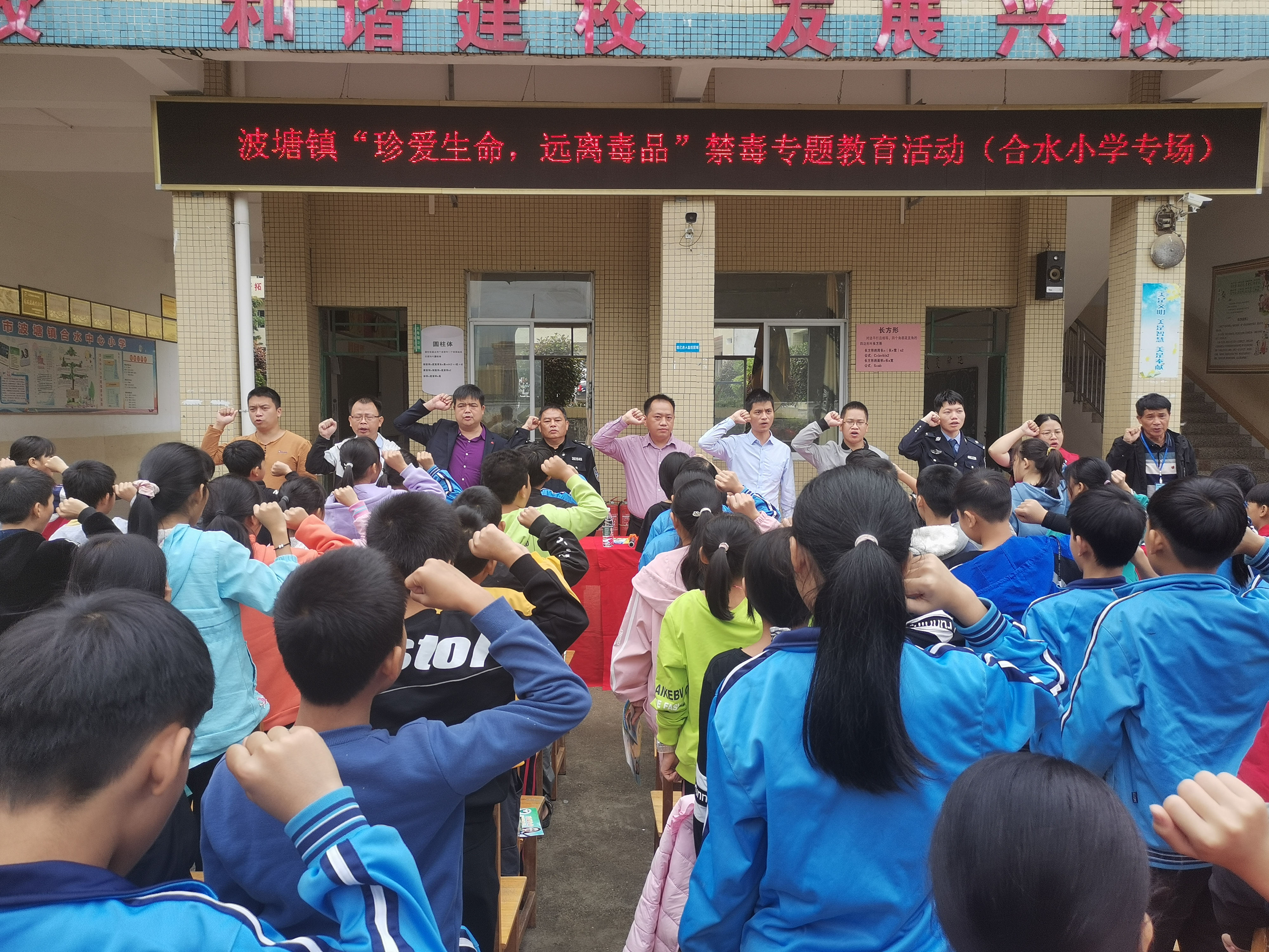 中小学生思想未成熟,加上对邪教毒品领域好奇和无知,极其容易受到邪教毒品侵害。为提前预防,及早普及相关知识,波塘镇党委政府积极开展“法制副校长讲座”、“反邪警示教育视频课”、“禁毒教育宣讲课”一系列防邪拒毒普法主题教育进校园活动。11月3日,在波塘镇合水小学组织开展“珍爱生命 远离毒品”禁毒暨反邪普法专题教育活动。活动中,镇党委副书记、镇长围绕“防范邪教和毒品”主题来展开讲授,讲授了“毒品的概念”、“毒品的危害”、“什么是邪教”、“邪教的负面影响”以及“青少年如何预防抵制邪教和毒品”等大量的知识内容。随后,举行了禁毒宣誓、签字仪式,呼吁广大师生筑牢思想防线,时刻保持警惕。最后,组织各班学生回到教室观看“防邪拒毒”主题教育视频,让师生直观感受影视教育。