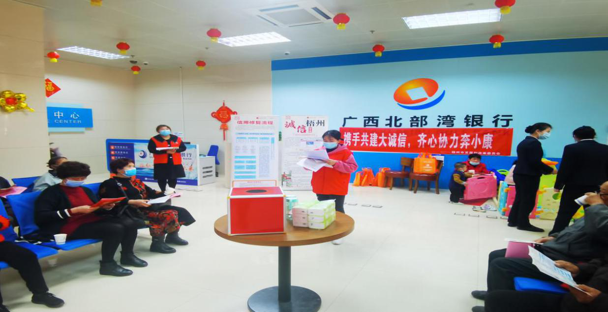 1.诚信宣传进银行。与银行联合开展银行网点信用宣传周活动,对来银行办理业务的客户普及信用知识,让广大群众更好地了解信用,认识信用,重视个人征信,提高群众的诚信意识,增强了金融消费者注重个人征信和信用记录的理念,传播“守信光荣、失信可耻”的价值观,逐步形成信用文化宣传长效机制。