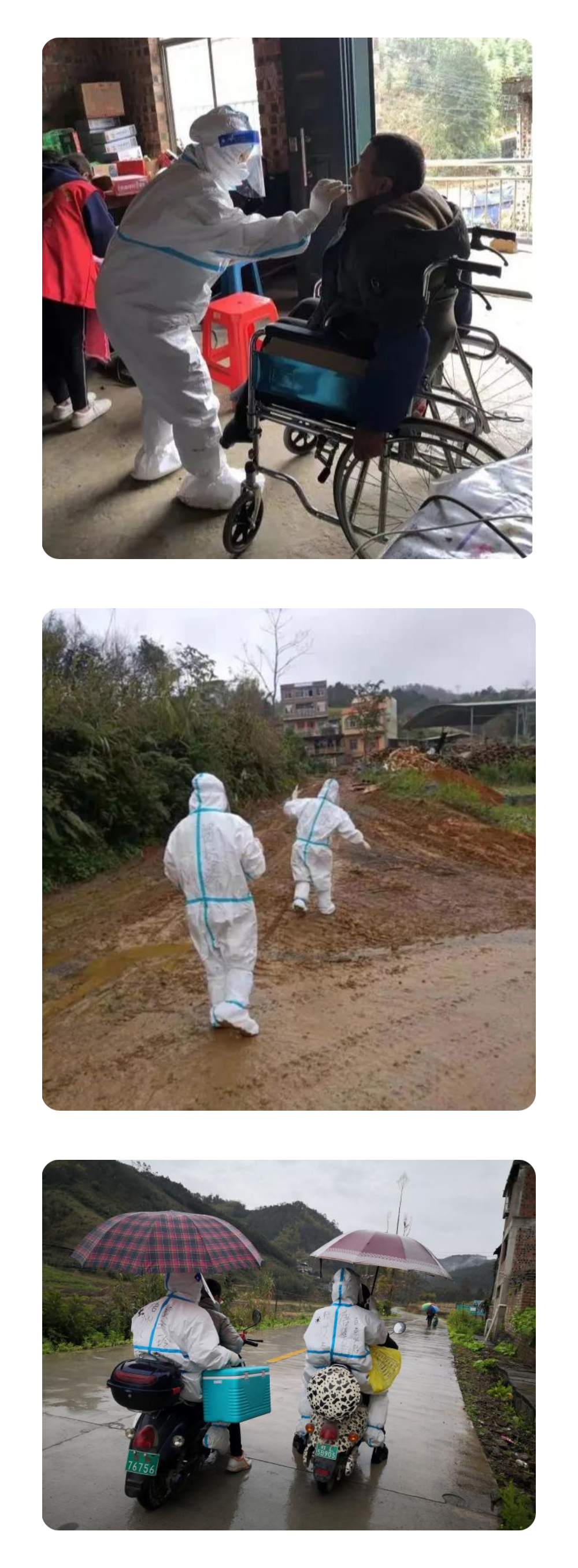 无论是在百色的市区还是田阳、右江的大街小巷、村屯都可以看到我们可敬的白衣天使,顶着严寒、冒着风雨、踩着泥泞,爬山涉水,不分昼夜,或设点、或入户,为群众检测核酸、开展流调工作,哪里有需要就出现在哪里。