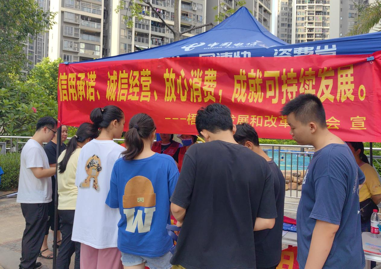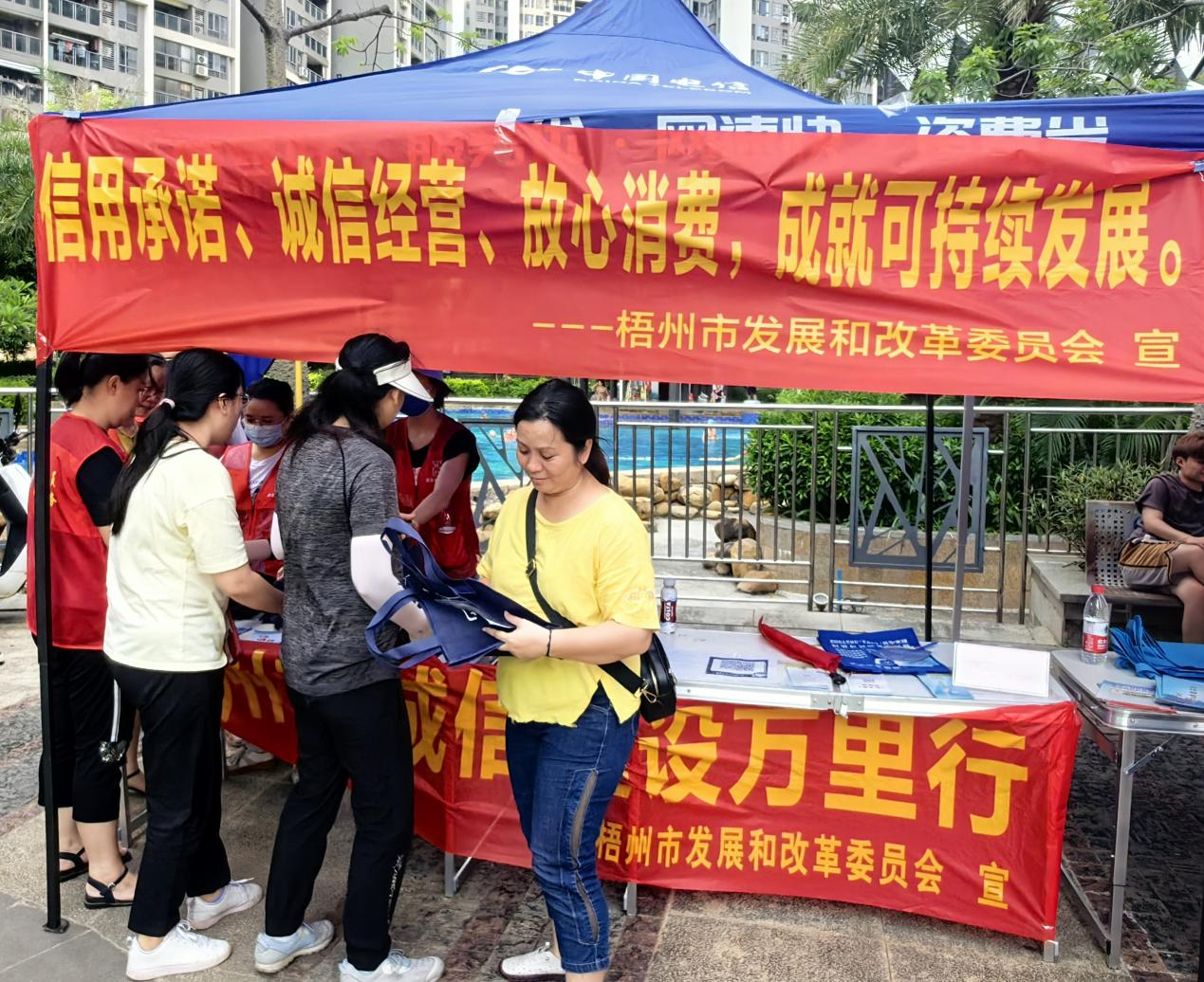 为提升市民诚信意识,在全社会营造“守信光荣,失信可耻”的良好社会环境,着力推进梧州市诚信建设常态化,形成全民自觉遵纪守法、诚实守信的社会风尚。近日,梧州市发展和改革委员来会到灏景玥城社区,开展“信用承诺、诚信经营、放心消费 成就可持续发展”诚信宣传进社区主题活动。