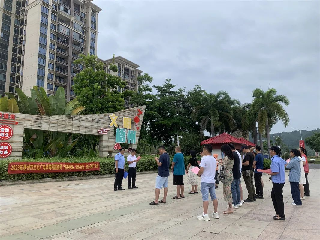 为提高文旅市场主体诚信经营意识,营造安全放心的消费环境,8月30日,市文广体旅局组织市文化市场综合行政执法支队执法人员、梧州市文旅行业业主代表在苍海湖公园举行2023年“信用承诺 诚信经营 放心消费”主题活动。