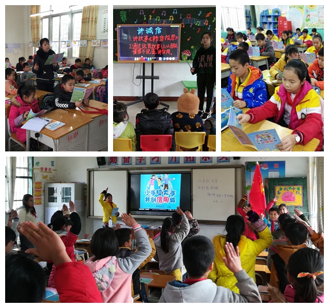 图5 各校在少先队主题活动中开展诚信宣誓和诚信故事会