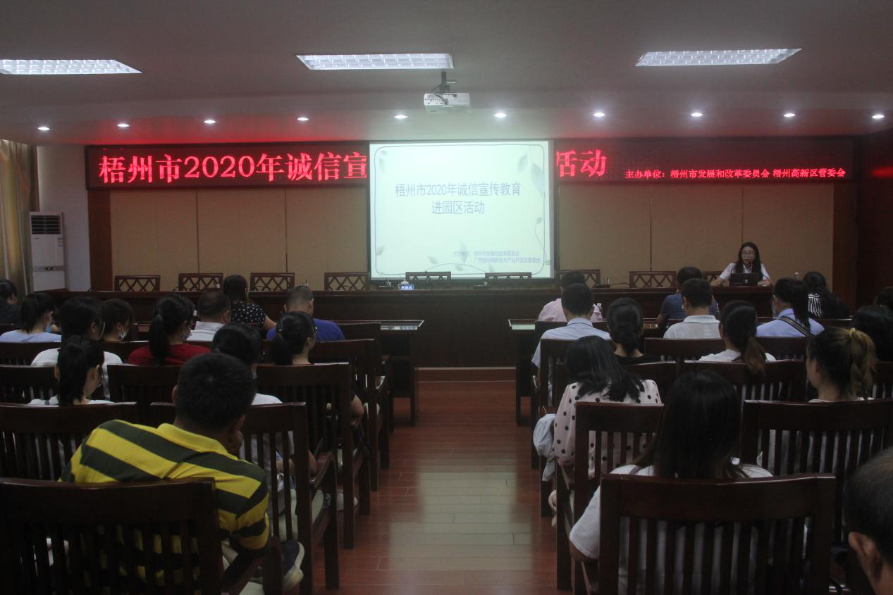 为积极推进社会信用体系建设,弘扬诚信文化,进一步提升全社会诚信意识,2020年7月21日,市发展改革委和梧州市高新区技术产业开发区联合组织开展“诚信宣传进园区”主题教育活动。近六十家高新园区企业参加本次主题宣传教育活动。