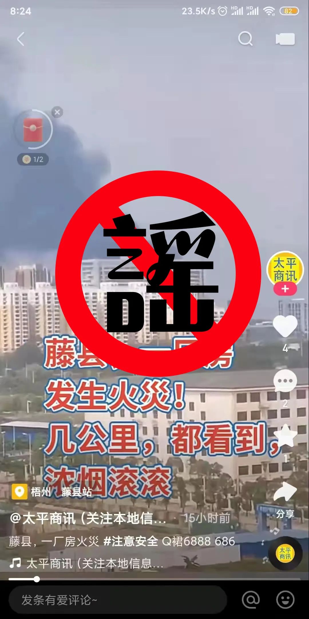 4月10日,藤县公安局民警在网络巡查中发现,有藤县网友在某网络视频平台上发布“藤县,一厂房发生火灾!几公里,都看到,浓烟滚滚”视频。