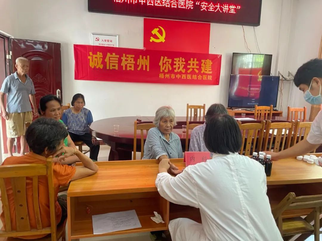 为加强社会信用体系建设宣传教育,提升全民诚信意识,在全市营造诚实守信的营商环境和社会环境。6月30日上午,梧州市中西医结合医院组织医疗队、志愿者前往华映村,以“诚信梧州 你我共建”宣传教育为宗旨开展“诚信宣传+义诊”活动。
