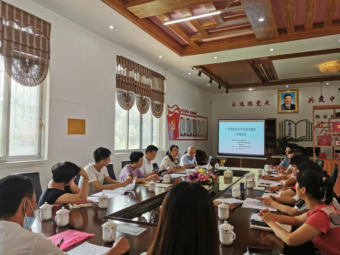为此,广西苍梧农业科技园区工作专班成员和入园建设企业负责人于近日召开了园区建设工作推进会,研究部署园区创新辐射能力建设项目实施,解读项目实施管理新政策。