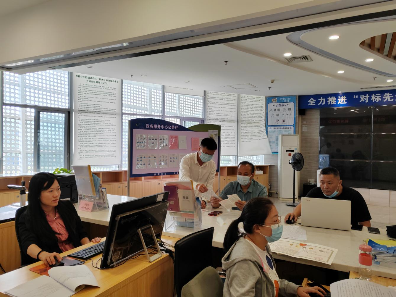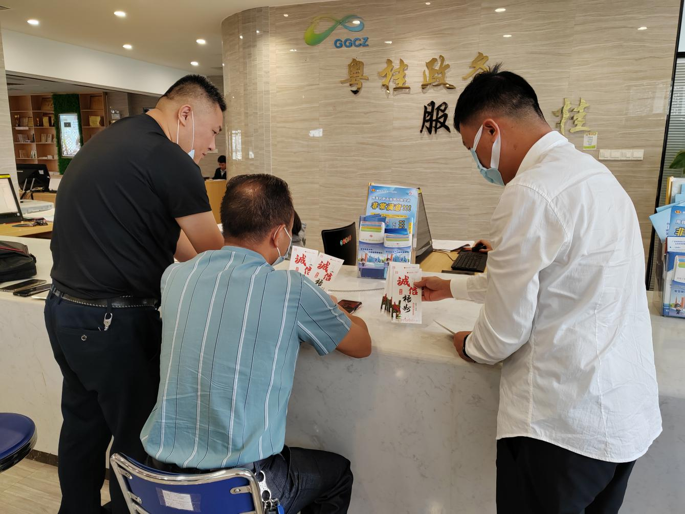 (粤桂合作试验区干部向前来政务中心办证的企业宣传信用知识)