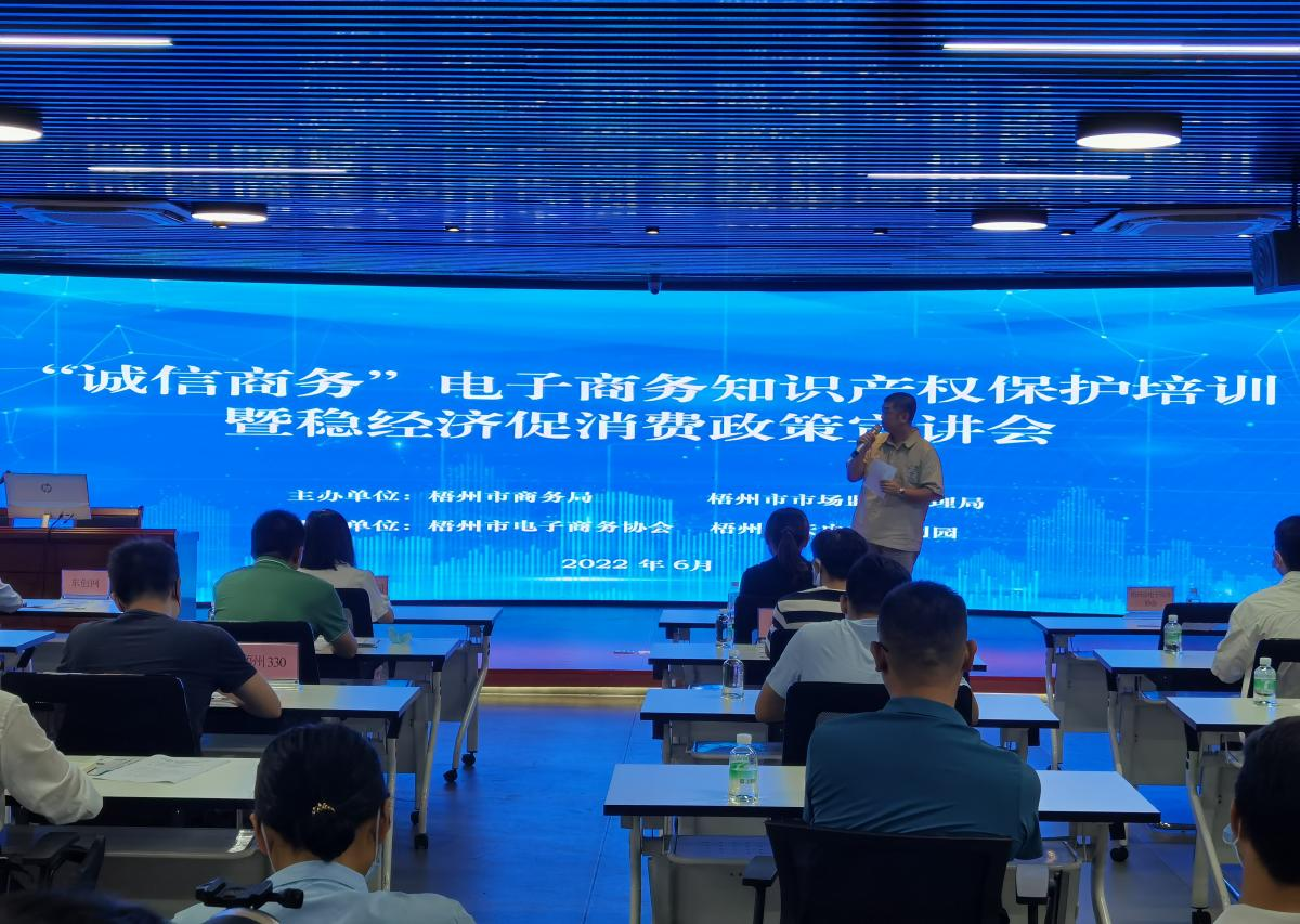 为规范市场秩序营造良好营商环境,大力弘扬商务诚信文化,引导和规范电子商务企业履行诚信兴商、知识产权保护义务,提升企业诚信、知识产权风险防范和纠纷处理能力,稳住经济和助力企业发展,市商务局、市市场监管局联合举办“诚信兴商”电子商务知识产权保护培训暨稳经济政策宣讲会。