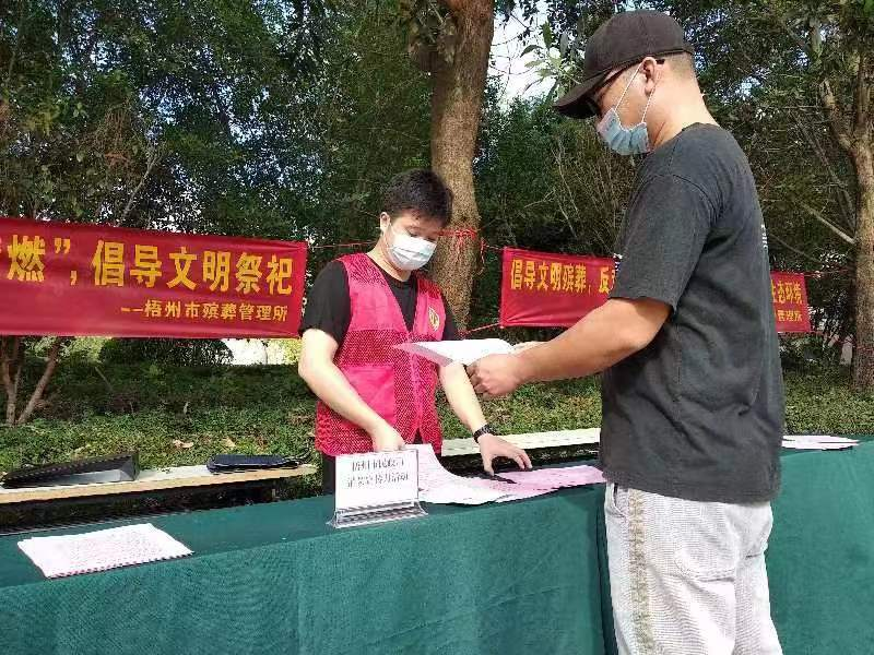 本次宣传结合公益节地生态安葬活动开展,通过在长青园公墓门口设立宣传活动点、派发宣传单、悬挂横幅、现场答疑解惑等方式,向参加公益节地生态安葬活动的群众普及消防安全知识、个人诚信知识、信用承诺知识和安全法律法规等,并倡导移风易俗,文明祭祀,禁燃烟花爆竹,保护生态环境。