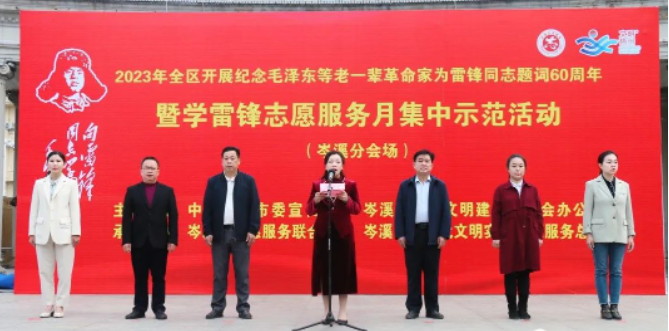 2023年全区纪念毛泽东等老一辈革命家为雷锋同志题词60周年暨学雷锋志愿服务月集中示范活动(岑溪分会场)在小广场举行。活动旨在进一步培育和践行社会主义核心价值观,大力弘扬雷锋精神和志愿精神,推动全市形成崇尚志愿服务、热心志愿服务的良好风尚,引导广大群众牢固树立诚信理念,在全社会营造诚实、守信、自律、互信的良好社会风尚。