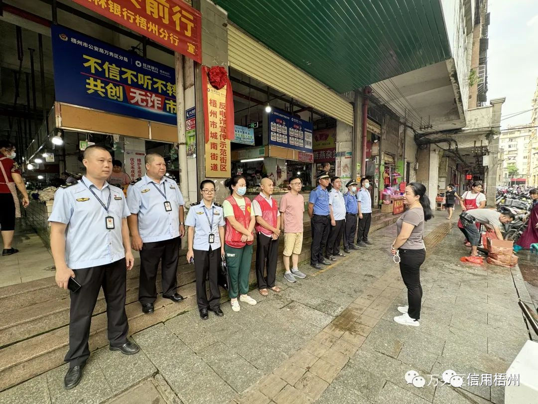 为改善农贸市场经营环境,提升市容市貌,营造风清气正、规范合理、诚实守信、竞争有序的市场,近期,城南街道联合区市场监管局、区城管局、万秀交警大队、万秀消防救援大队、区环卫处、社区志愿者开展大东市场及周边环境卫生综合整治行动。