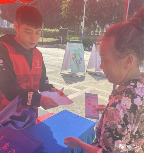 为加快推进社会信用体系建设,推动诚信美德融入群众的日常生活,营造诚信的良好社区风气。2023年10月23日上午,2023年梧州市“敬老月”主题宣传暨广场义诊宣传活动在市政广场举行,我委积极到现场开展诚信宣传活动。