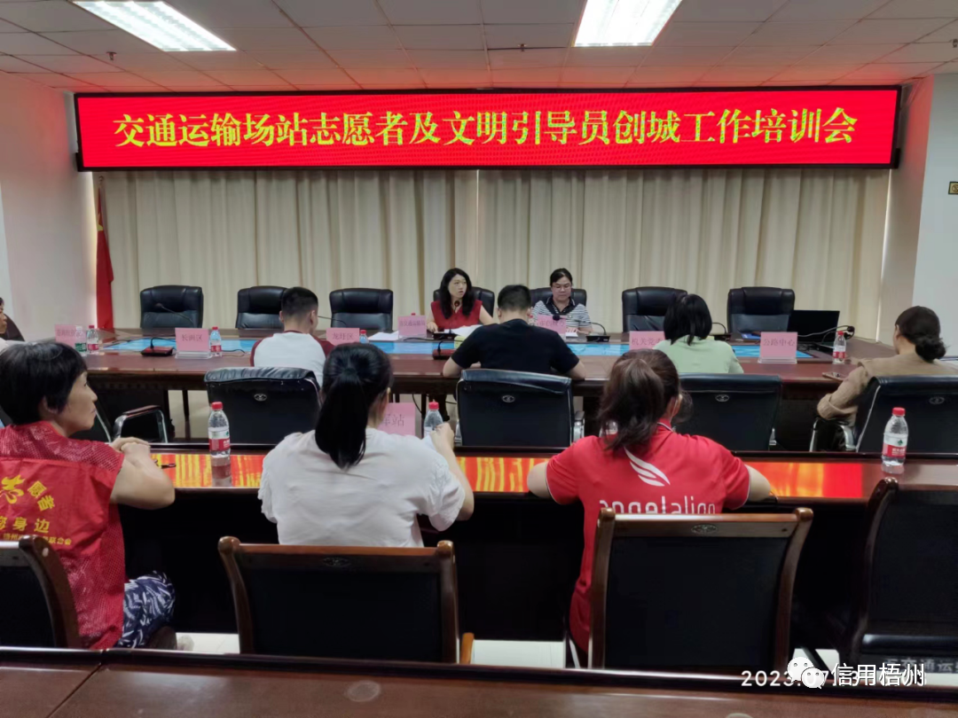 为倡导诚实守信的社会风尚,深入推进交通运输系统诚信建设,营造“诚信交通”建设良好氛围。近日,市交通运输局召开交通运输场站志愿者及文明引导员诚信工作培训会。市交通运输局业务部门,长洲区、龙圩区创城办,苍海集团相关负责人,梧州金晖汽车站、综合客运枢纽站,梧州机场、梧州南站、梧州火车站志愿者共20人参加了培训会。