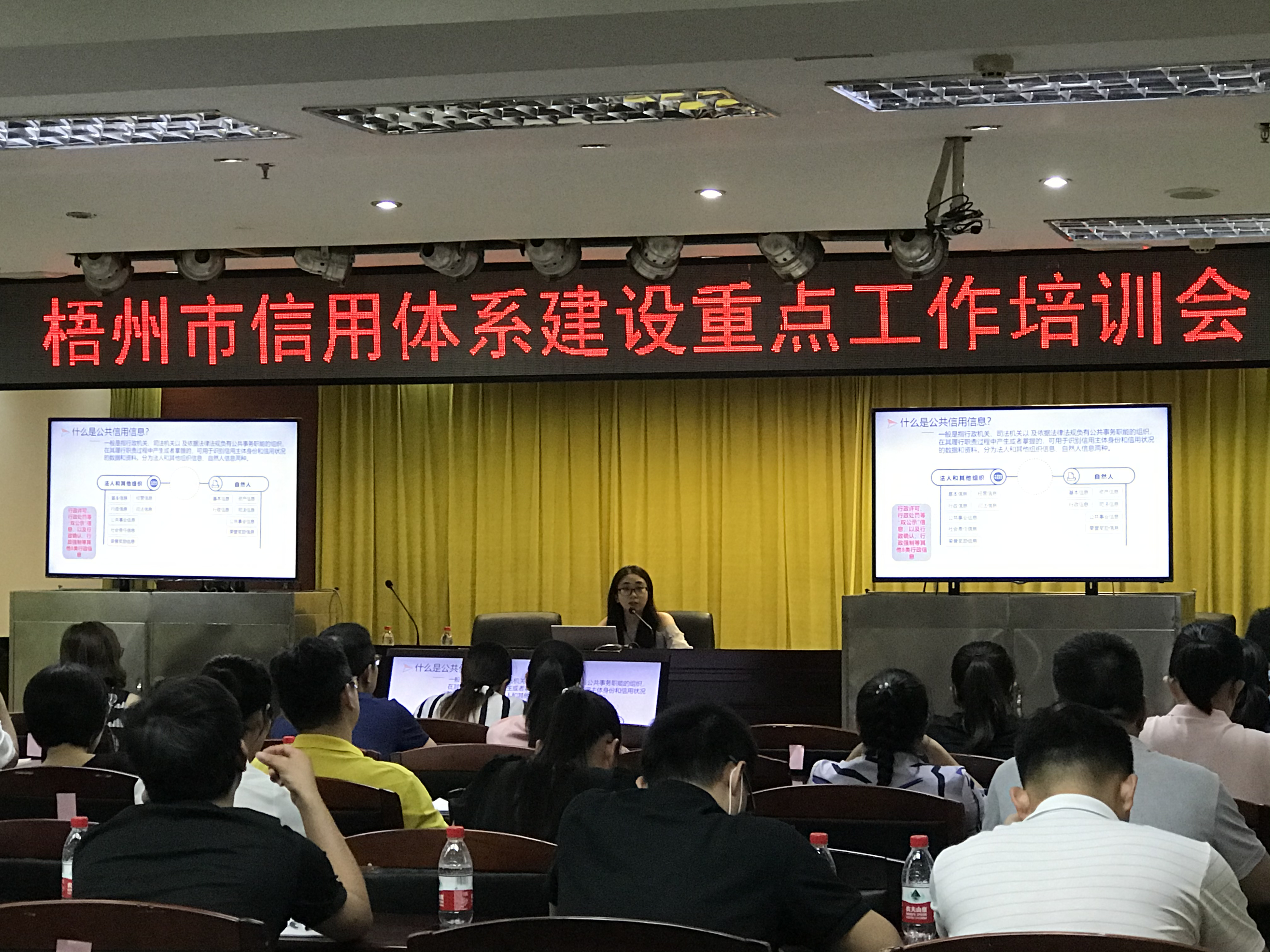 本次培训会,围绕“落实2020年市政府工作报告中的信用体系建设重点工作任务”和提升梧州市城市信用状况监测工作两大主题,从如何开展推动信用体系业务角度来培训。