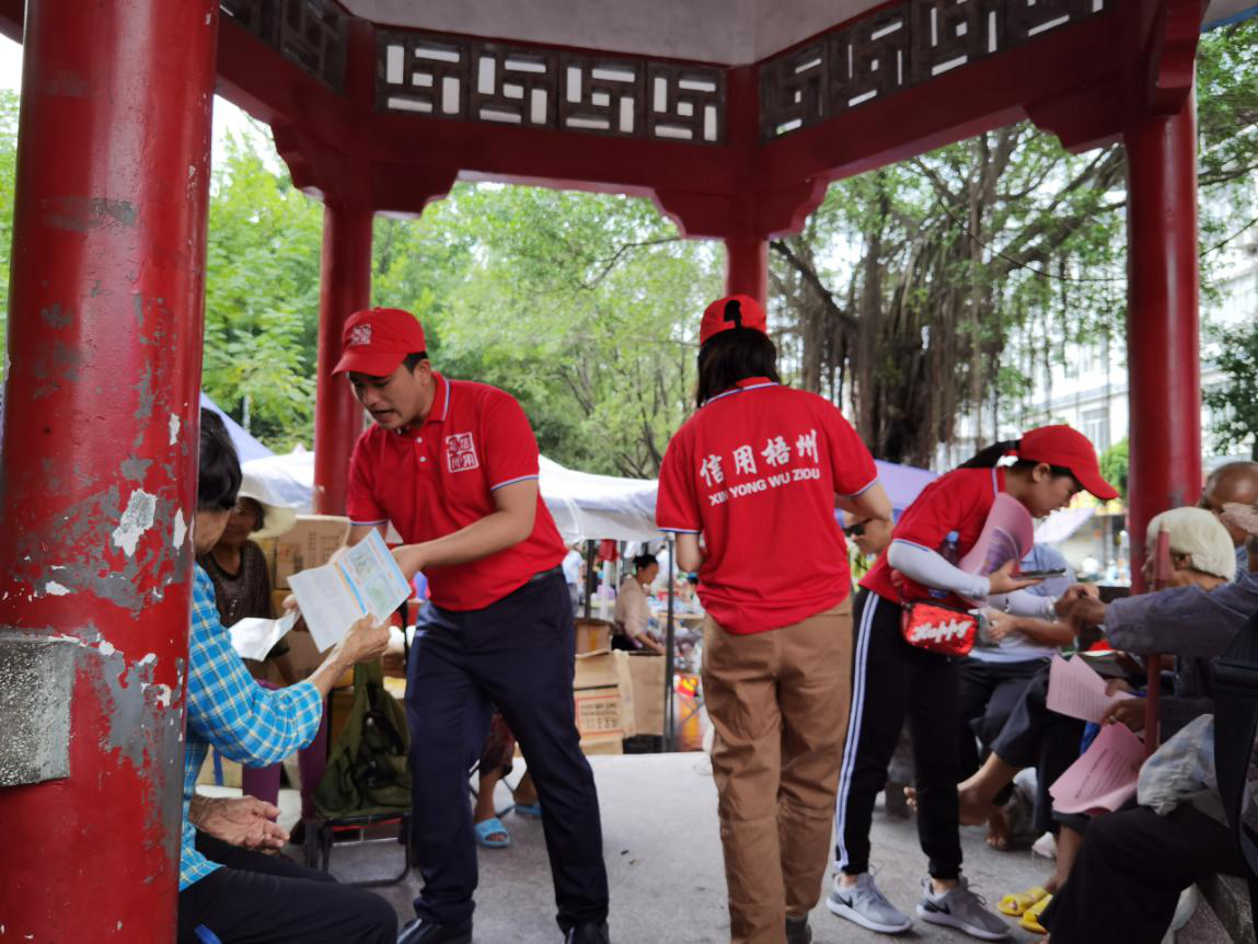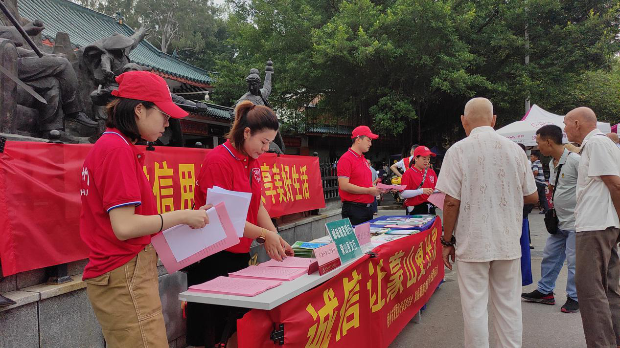 现场,通过宣传展板、拉横幅、发放宣传单、小册子向过往的行人及群众普及诚信知识,解读信用政策,宣扬“诚实做人,诚信做事”、“诚信经营,以德治企”的诚信理念。
