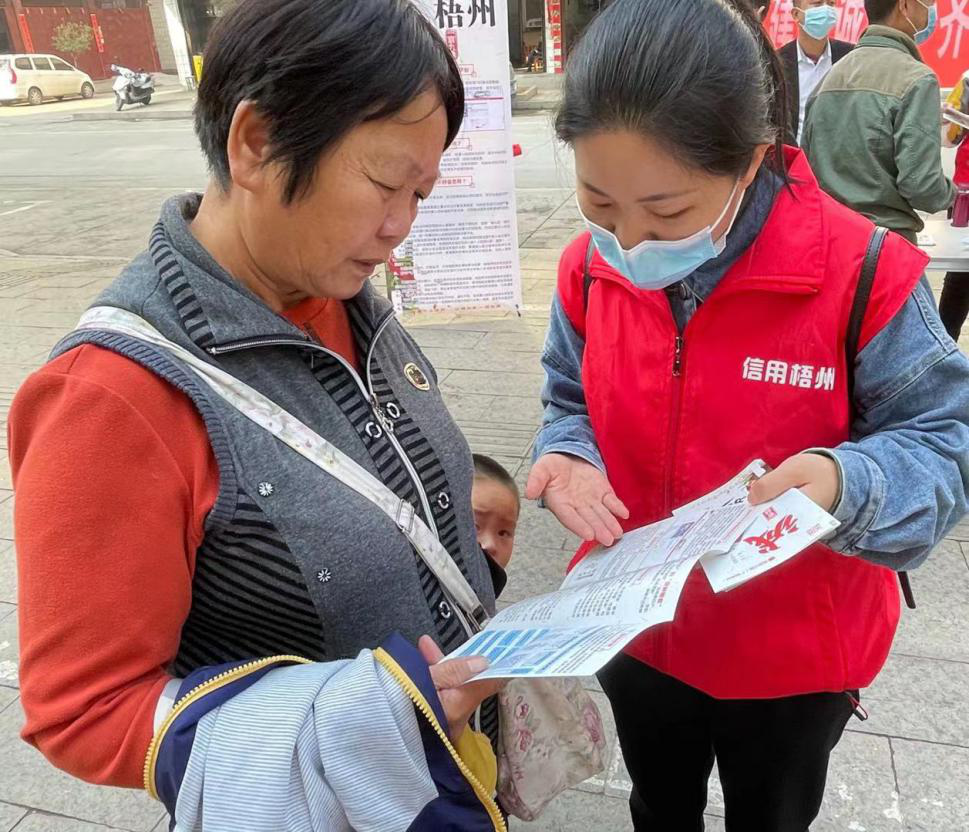 活动中,工作人员带上宣传资料,深入居民小区、农贸市场等人员较为集中的地方,面对面开展诚信知识宣传,耐心对居民讲解且能引导其关注信用知识,提升防范信用风险意识,强调守信的重要性、失信的严重后果等内容,让更多的居民认识到诚信的重要性。