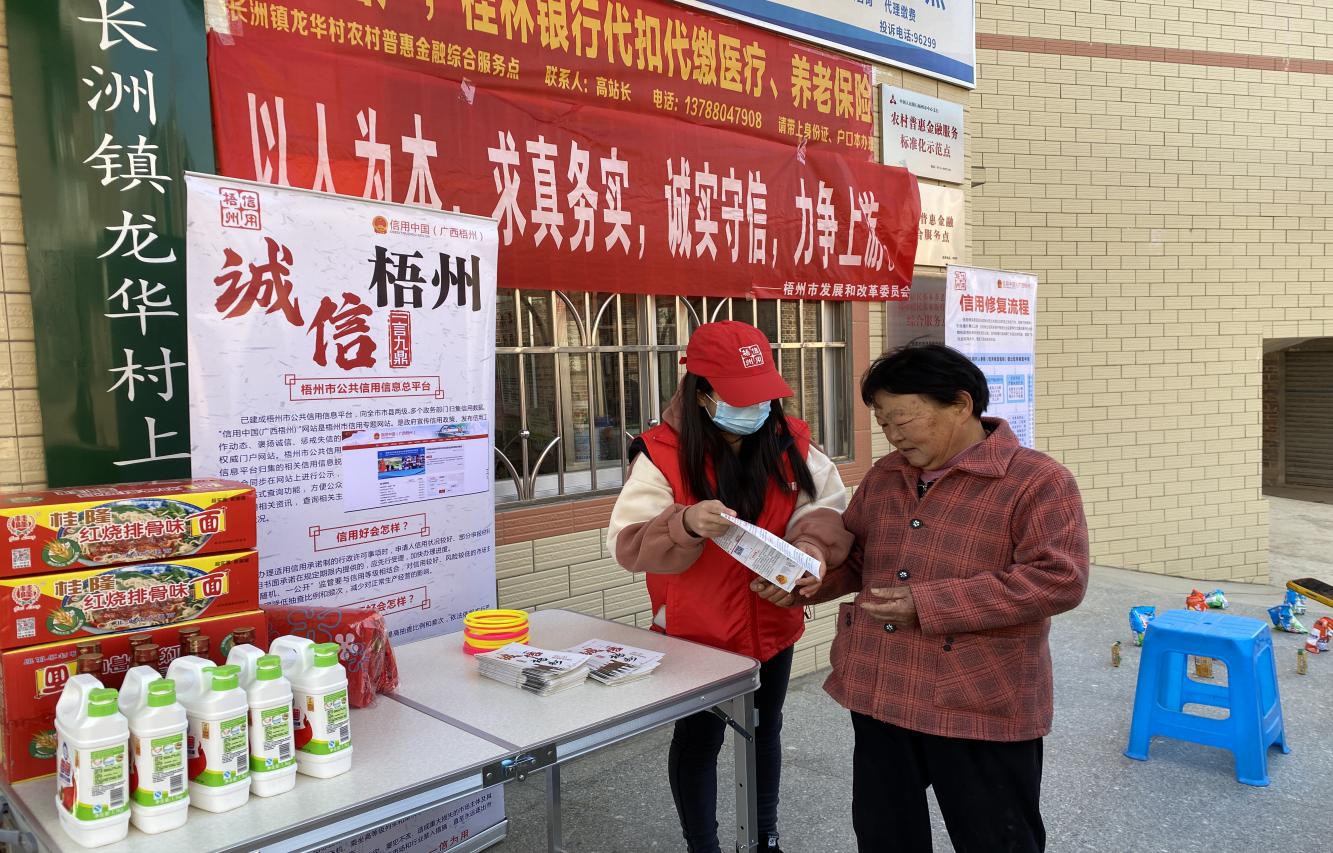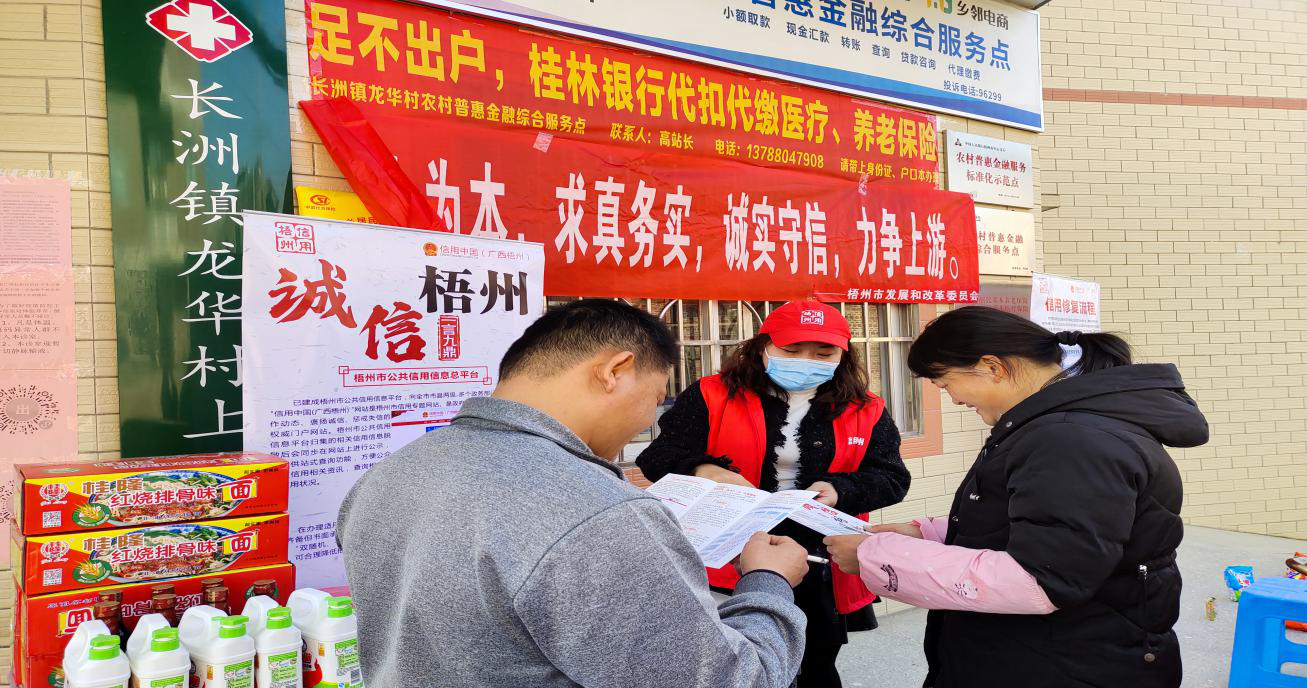 为弘扬诚信文化,提高群众信用意识,1月19日,市发展改革委联合桂林银行梧州分行在长洲镇龙华村开展“迎新春”信用宣传活动。