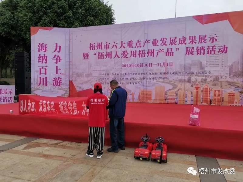 10月30日,梧州市六大重点产业发展成果展示暨“梧州人爱用梧州产品”展销活动在梧州市政广场举行,全市六大重点产业近100家企业参展。