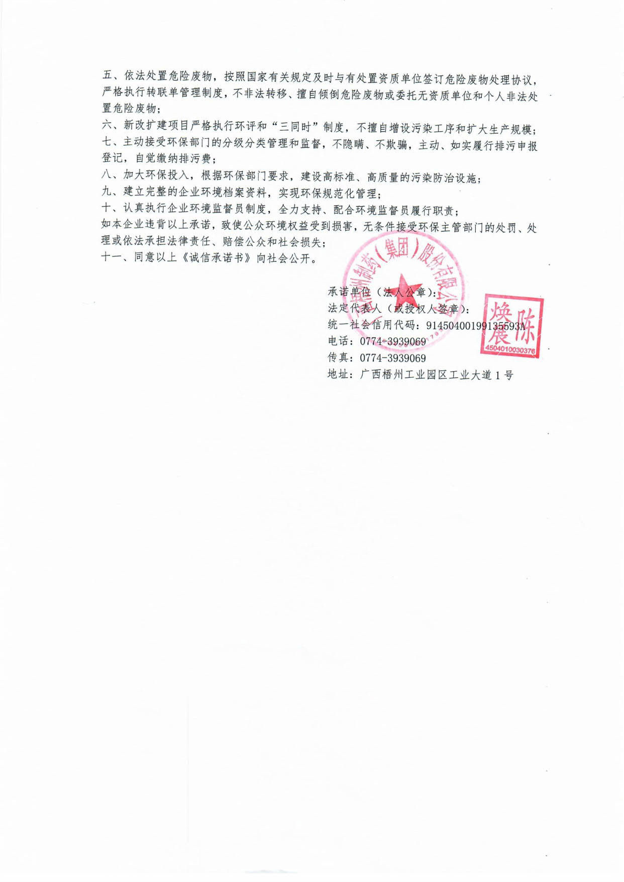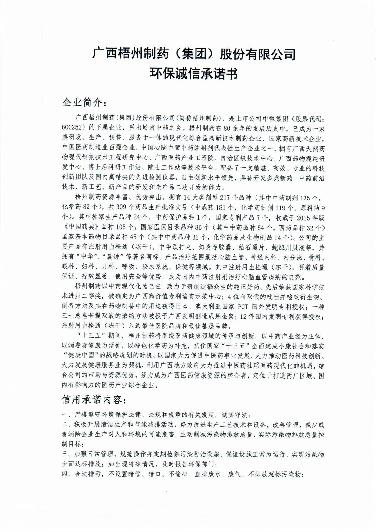 广西梧州制药(集团)股份有限公司环保诚信承诺书