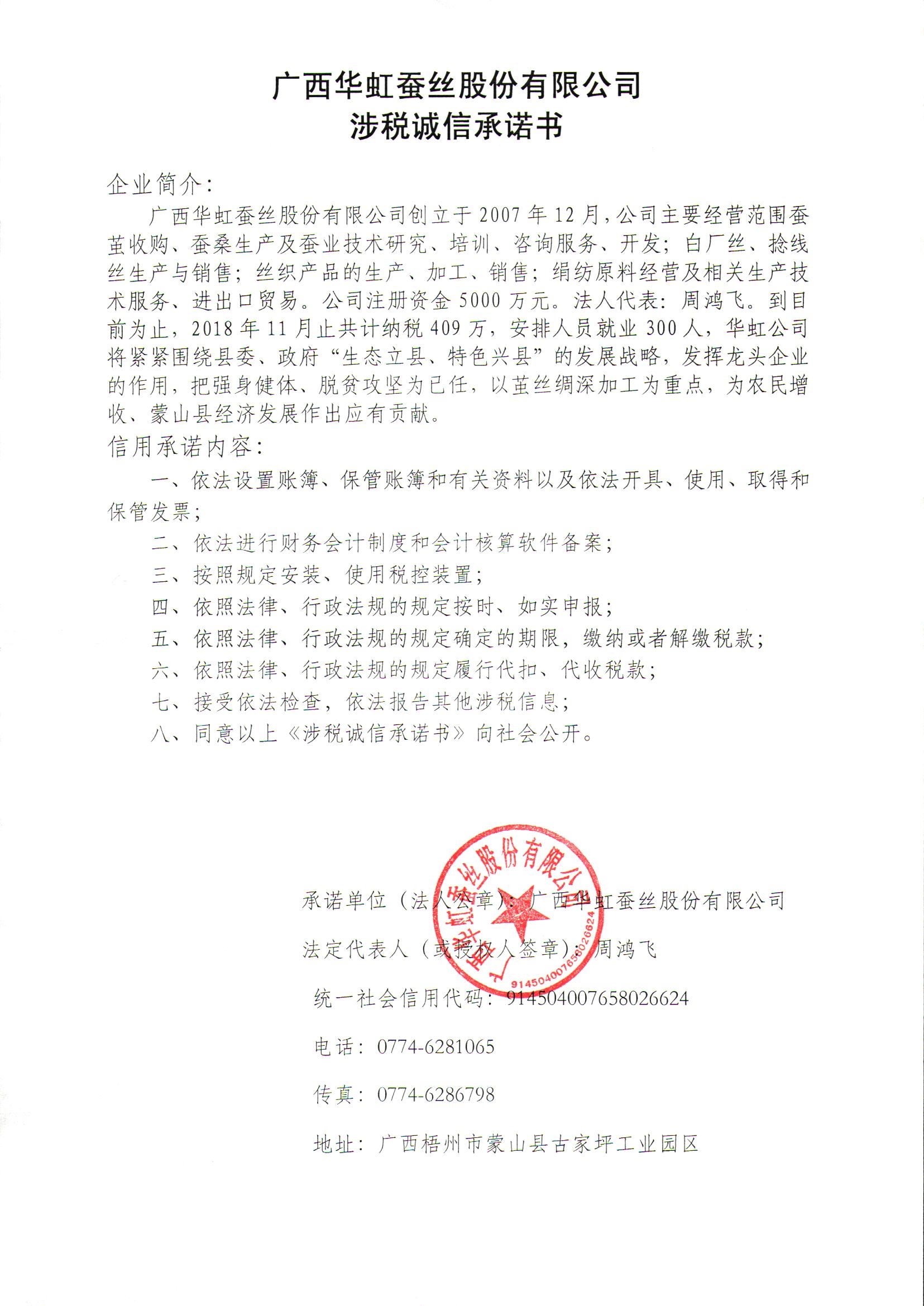 广西华虹蚕丝股份有限公司涉税诚信承诺书