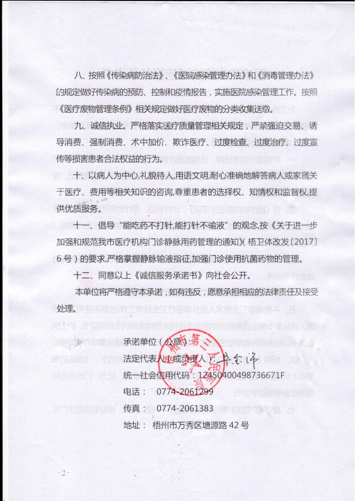 第三人民医院医疗卫生机构诚信服务承诺书