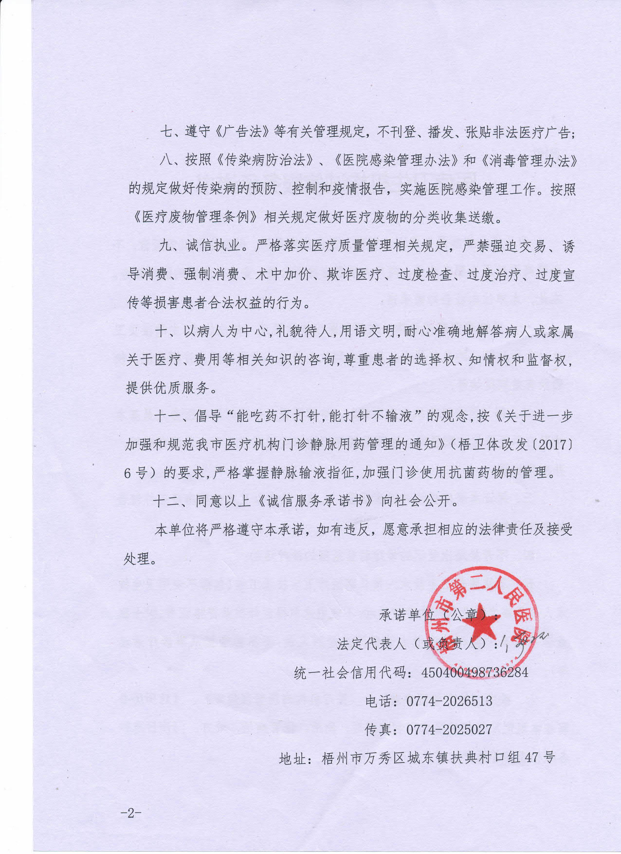 梧州市第二人民医院_医疗机构诚信服务承诺书