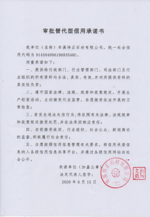 岑溪伟正石材有限公司审批替代型信用承诺书