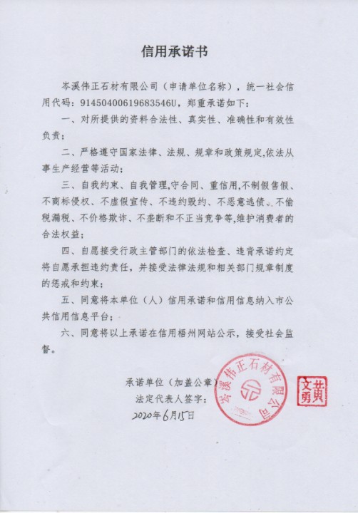岑溪伟正石材有限公司信用承诺书