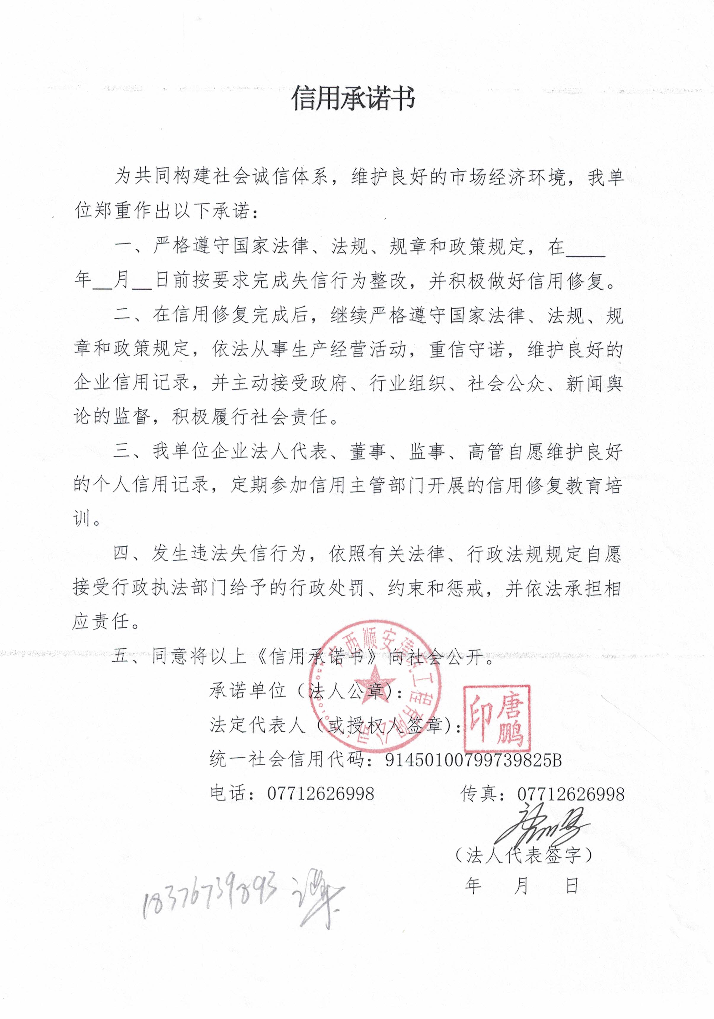 广西顺安建筑工程有限公司信用修复信用承诺书