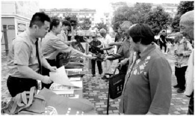 为进一步提高老年群众防范电信网络诈骗意识,增强识别养老诈骗手段能力,切实守住老年群众的“钱袋子”,8月31日,安徽省蚌埠市淮上区人民检察院组织干警深入社区开展以“防范养老诈骗”为主题的普法宣传活动。图为检察干警在淮上区桃花园社区设置法律咨询台向老年群众介绍诈骗分子的惯用手法及防诈常识。本报通讯员胡娜摄