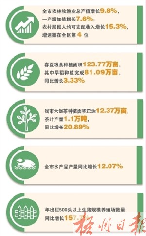 ——全市农林牧渔业总产值增长9.8%,一产增加值增长7.6%;