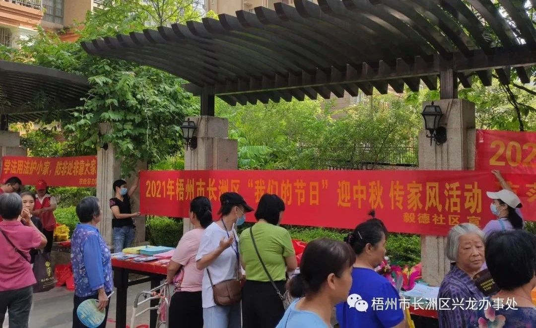 为了深入贯彻落实习近平总书记关于“注重家庭、注重家教、注重家风”的重要指示精神,进一步弘扬社会主义核心价值观,推进文明城市建设,传承优良传统,凝聚奋进力量。9月17日,兴龙街道毅德社区联合“双报到”单位梧州市金融办、北部湾银行梧州分行、长洲区委宣传部、区统计局在海骏达花园小区开展“我们的节日”迎中秋·传家风主题活动。
