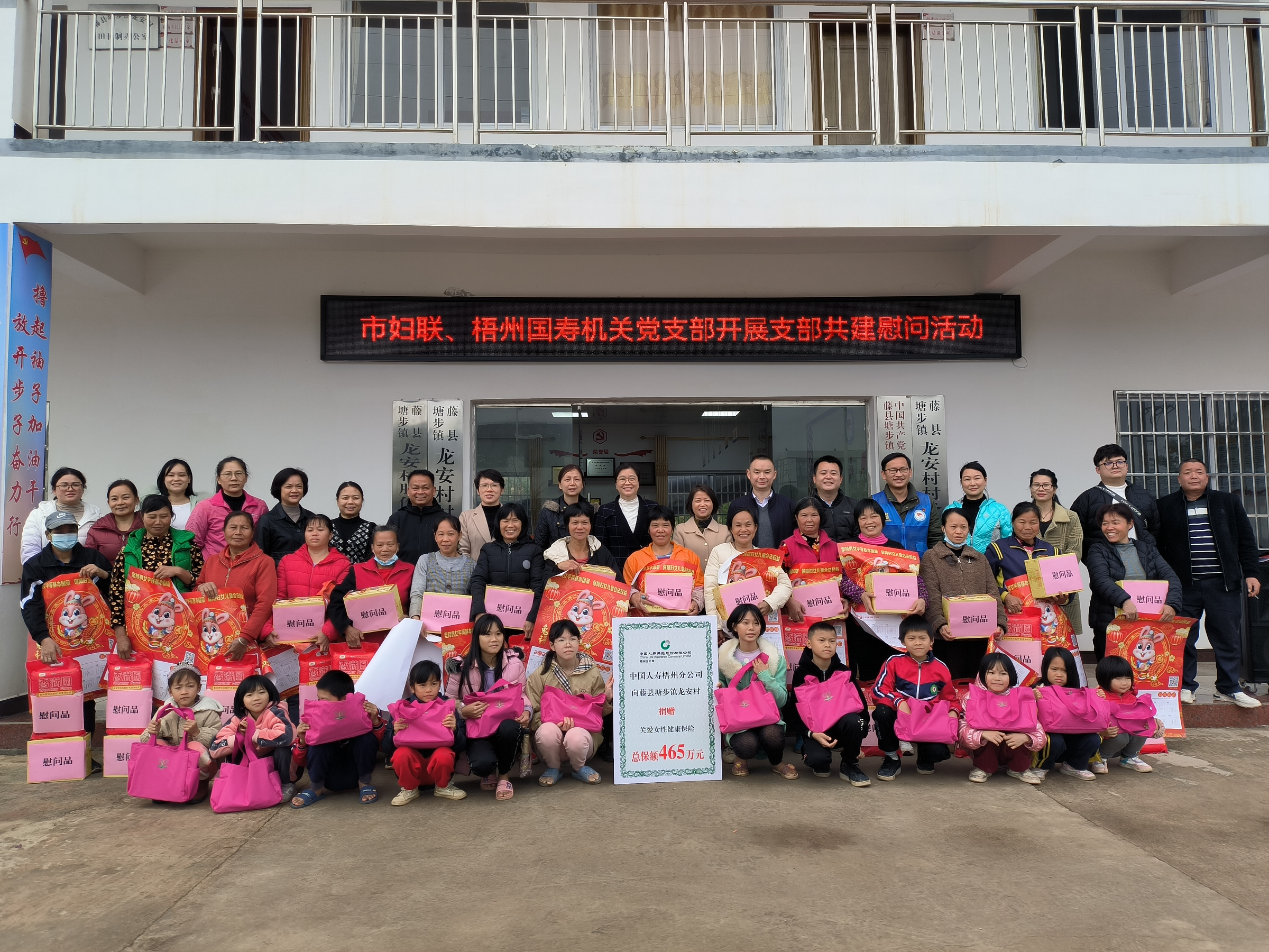 为提升我市社会信用体系建设水平,更好地推动城市诚信建设,近日,梧州市妇联、中国人寿梧州分公司到藤县塘步镇龙安村共同开展关爱女性健康保险捐赠及慰问活动。广泛宣传信用法规制度,引导妇女儿童群体发扬“诚实守信”这一中华传统美德。梧州市妇联主席覃杏、副主席陈思宁、四级调研员余娟、中国人寿梧州分公司总经理助理黄涌、藤县人大常委会副主任黄琼兰以及梧州市妇联、中国人寿梧州分公司部分党员干部参加了活动。
