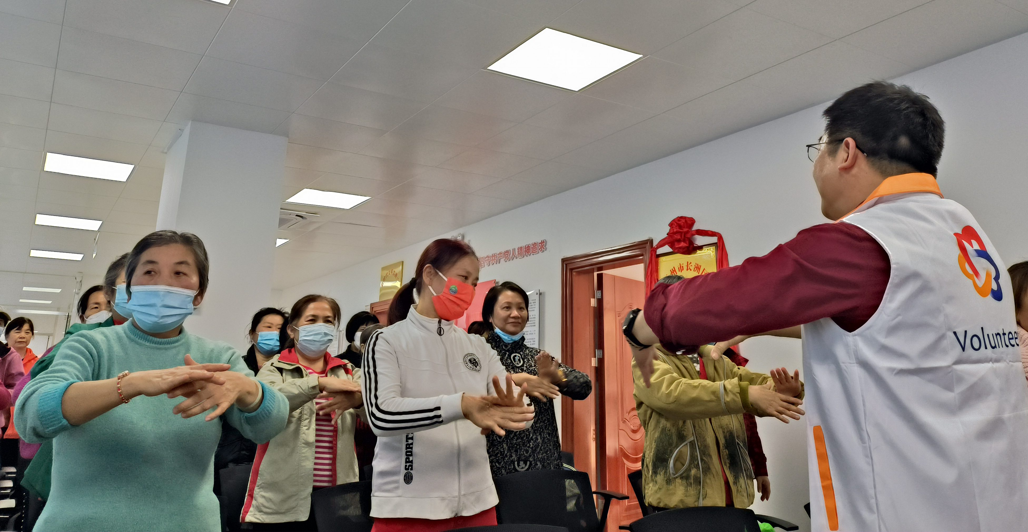在活动现场,老人家们共同学习党的二十大精神,参与有奖知识问答;收听国家二级心理咨询师林轩老师带来的《健康安度晚年》小讲座,齐声欢唱《你笑起来真好看》,并高兴地跳起了“手指操”......