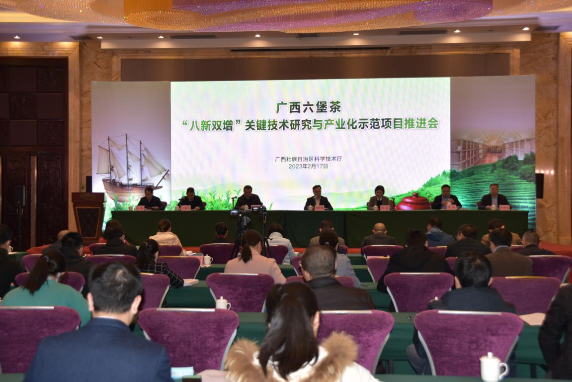 近日,广西六堡茶“八新双增”关键技术研究与产业化项目推进会在梧州市召开。会议通报项目执行中期评估结果,总结项目实施进展情况、取得成效和下一步推进措施,动员项目实施人员树立诚信意识、项目信心、按质按量按时完成项目实施目标,以项目产出支撑六堡茶做大做强。中央候补委员、中国工程院院士、湖南农业大学教授刘仲华,自治区科技厅党组成员、副厅长唐咸来、梧州市人民政府副市长苏颖出席会议并讲话。