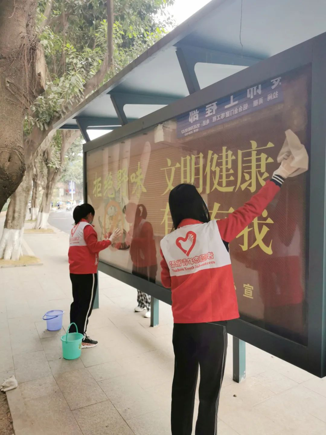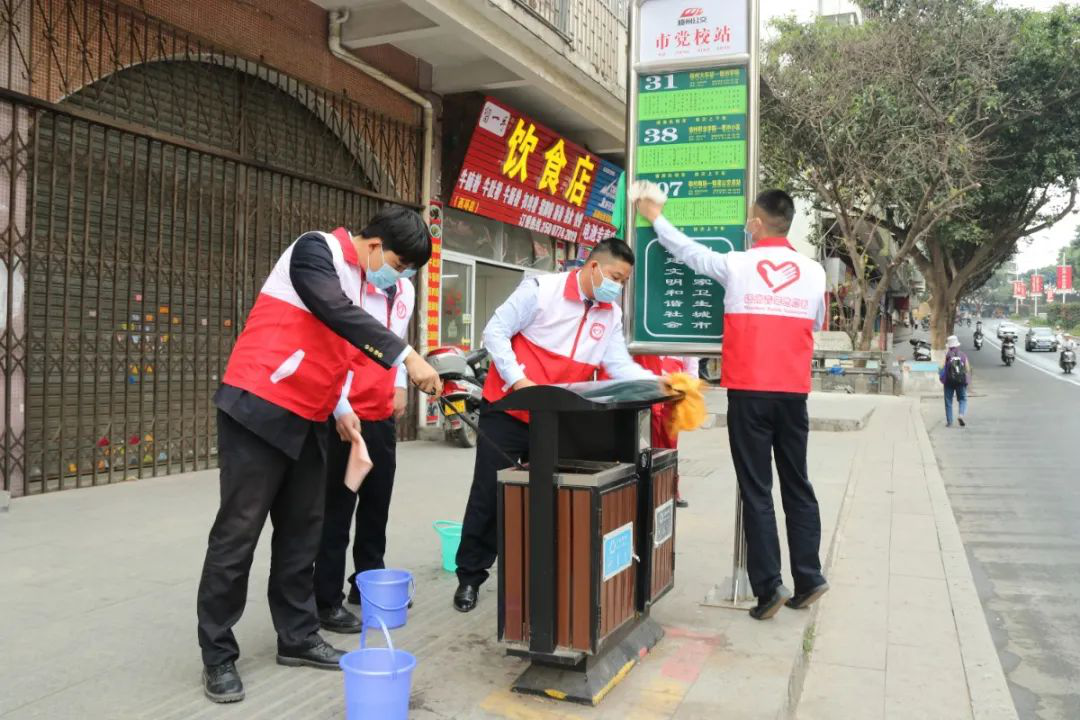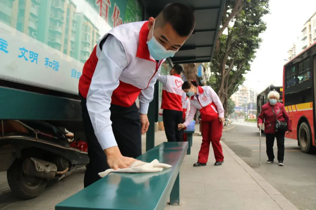 让“城市窗口”更洁净美丽 | 团市委组织开展清洗公交站点志愿服务行动