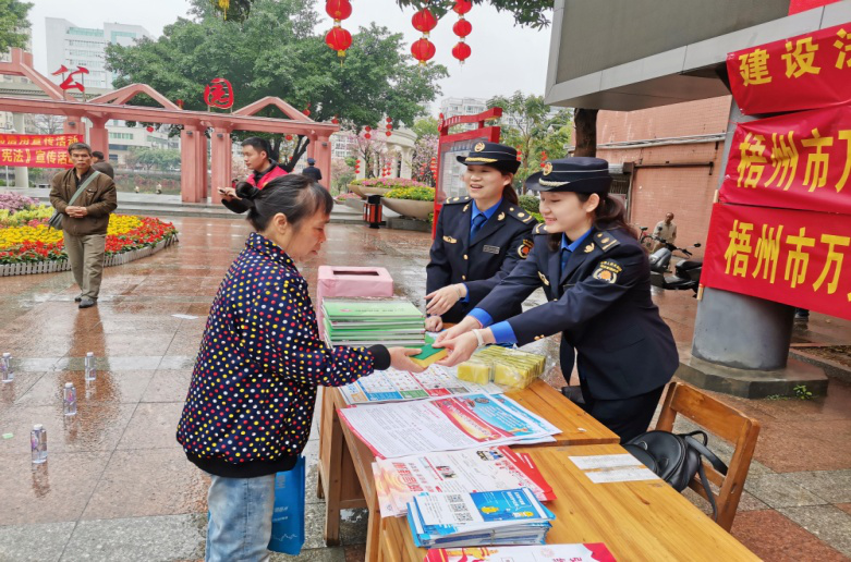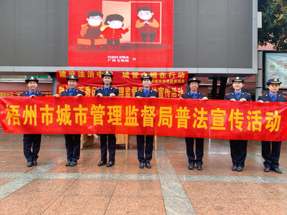 3月5日,临近“三八国际妇女节”,正值学雷锋月,在这特殊的日子里,为大力弘扬雷锋精神,同时激励广大女执法队员立足岗位作奉献的工作热情。当天上午,梧州市城市管理监督局组织市城市管理执法支队、三城区城市管理监督局及执法大队巾帼队员在市潘塘公园开展“建设法治中国 城管巾帼在行动”法律宣传暨学雷锋志愿服务活动,努力营造尊法、学法、用法、守法的法治氛围。