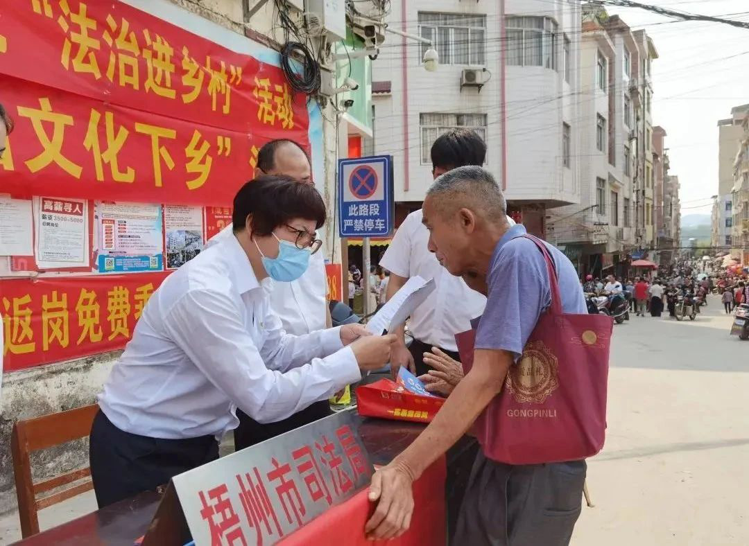 为深入推进党史教育和政法队伍教育整顿工作,全面开展“我为群众办实事”教育实践活动,4月1日上午,市司法局联合万秀区司法局组织普法工作者和律师党员来到夏郢镇,开展法治进乡村活动。广西益远律师事务所甘清华、杨泽生、吴月媚、禤钦珍四名党员律师受邀参加,律师们积极响应活动,为群众提供法治宣传和法律咨询服务,吸引了众多前来“趁圩”的群众驻足围观及咨询。