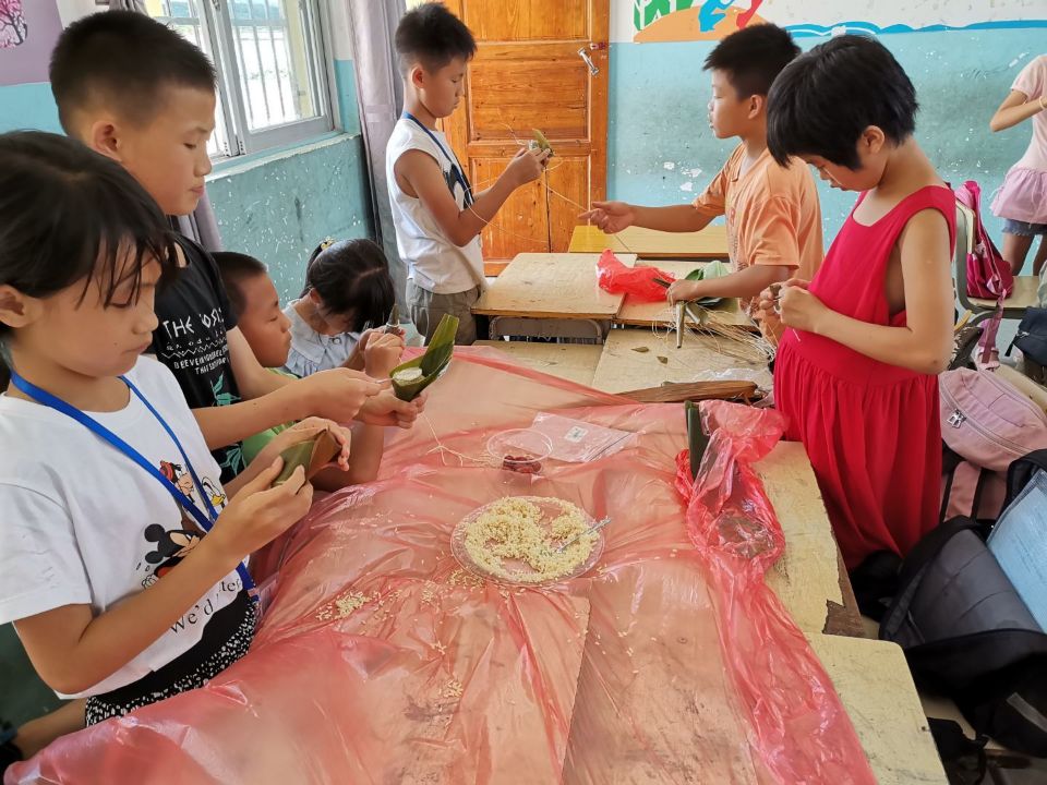 梧州市古善小学举行了“端午节—我们的节日”包粽子活动。