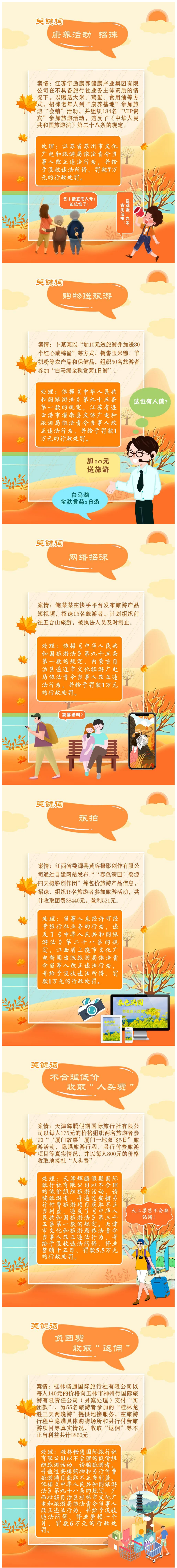 为进一步加强社会监督,规范旅游市场经营秩序,文化和旅游部公布了专项整治行动第四批指导案例,包括以康养活动招徕旅游者、购物送旅游、网络招徕、旅拍、“不合理低价游”的执法案例。国庆节将至,文化和旅游部提示广大旅游者审慎甄别旅游产品,理性选择合法正规的旅游服务,自觉抵制“不合理低价游”,保障自身安全和合法权益。欢迎社会公众通过举报电话12318和举报平台jbts.mct.gov.cn对违法违规旅游市场经营活动进行举报监督。