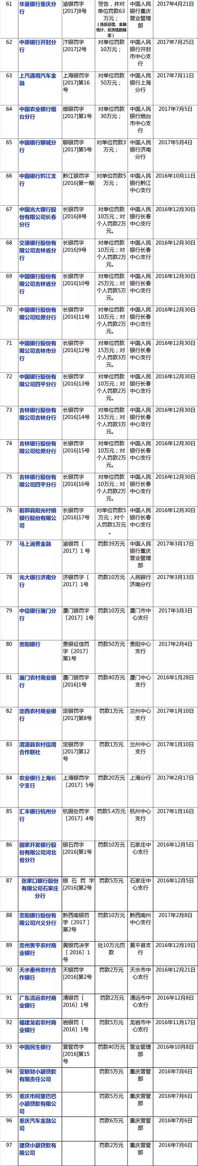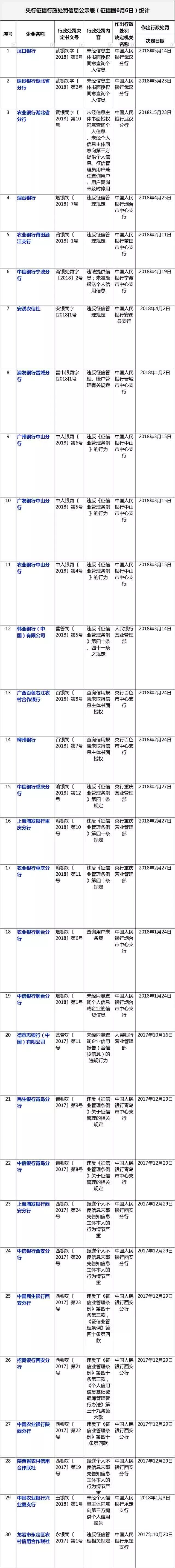 金融机构征信违规处罚汇总表 2018年6月6日版 by 征信圈