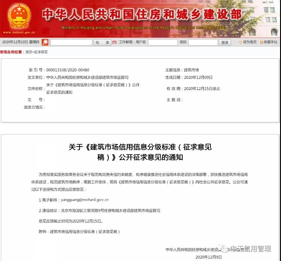 住建部:《建筑市场信用信息分级标准》征求意见